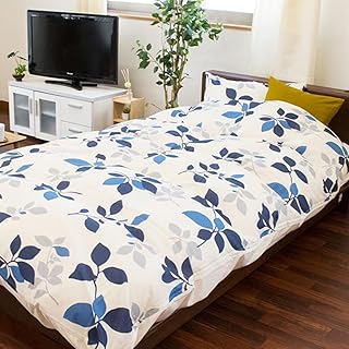 布団カバー シングル 3点セット 洋式 リーフ柄 ネイビー 掛け布団カバー ボックスシーツ シングルロング 枕カバー 43×63cm用 布団カバーセット