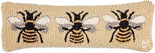 美しいハンドメイド装飾デザインby Chandler 4コーナーHand Hooked Bumblebeeウール枕8 " x24 "ファスナー付きVelveteen Backing