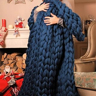 DIRUNEN チャンキーニットブランケット ハンドメイド ソフトニット スロー ベッド 寝室 装飾 かさばるソファ ネイビーブルー 59インチ×79インチ