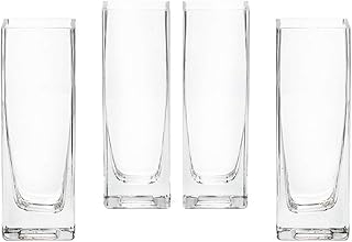 Serene Spaces Living ソフトスクエア花瓶 クラシック クリアガラス花瓶 ホームデコ イベントセンターピース 個別販売 4個セット Set of 4 クリア SSLGA20115PACK4