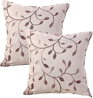 GYROHOME クッションカバー 2枚セット 北欧 玉付き ソファ背当て 装飾枕カバー 座布団カバーおしゃれ クラシック 木ノ葉 抱き枕 パープル 45×45cm