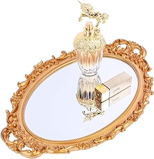 Zosenley 装飾ミラートレイ 花柄バニティオーガナイザー 香水 メイクアップ ジュエリー 装飾 ヴィンテージオーバルディスプレイ サービングトレイ ドレッサー カウンタートップ コーヒーテーブル用 ゴールド
