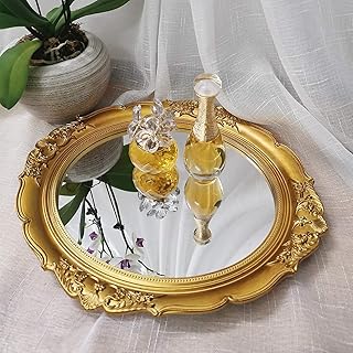 Yamfurga 装飾ミラー 壁掛けミラー ヴィンテージ多機能ディスプレイトレイ ジュエリートレイ バニティトレイ サービングトレイ 幅13インチ x 長さ15インチ ゴールド