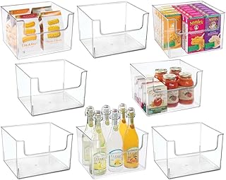 mDesign プラスチック製 前開き 食品収納容器 キッチンキャビネット パントリー 棚 冷蔵庫 冷凍庫用 フルーツ/ジャガイモ/玉ねぎ/ドリンク/スナック/パスタ用オーガナイザー 幅12インチ 8個パック クリア