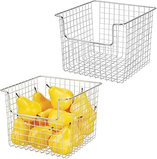 mDesign メタルワイヤ オープンフロントオーガナイザーバスケット キッチンパントリー キャビネット 棚用 缶詰 ベーキング用品 箱入り食品ミックス 果物 野菜 スナックを収納 幅10インチ 2パック クロム