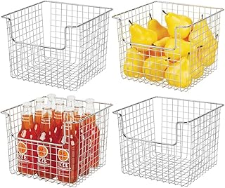 mDesign メタルワイヤ オープンフロントオーガナイザーバスケット キッチンパントリー キャビネット 棚用 缶詰 ベーキング用品 箱入り食品ミックス 果物 野菜 スナックを収納 幅10インチ 4個パック クロム