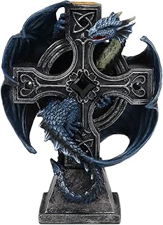 Ebros ゴシックブルースラキンドラゴン 祭壇 ドレイク クロスキャンドルホルダー 高さ7インチ キャンドルホルダー 中世ルネッサンスファンタジーデコレーション ダンジョンズとドラゴンのアクセント センターピース