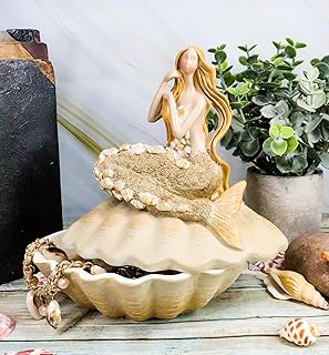 Ebros Gift 砂茶 抽象的な人魚 巨大貝殻 ジュエリーボックス 置物 貝殻オーナメント 高さ7インチ 海洋人魚 海のサイレン ホーム バスルーム 装飾像