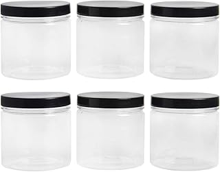 SBYURE 15オンス ラウンドクリアプラスチックジャー ブラック蓋付き ラウンドPET気密コンテナ キッチン&家庭食品保存 ドライグッズ ハニーナッツなどに 6個パック