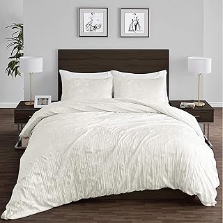 Crushed Crinkle ベルベット オフホワイト メタリック クラッシュ ボーホー シック テクスチャ グラム 掛け布団カバー シャム フルクイーンサイズ 寝具セット 無地 シャイニー ラグジュアリー モダン ボヘミアンティーン ベッドスプレッド キルト