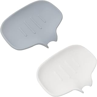 HUAZONTOM 石鹸置き 流れる ソープトレイ 2個置き ソープディッシュ 排水可 石鹸入れ おしゃれ 石鹸箱 シリコン素材 抗菌仕様 洗面所 浴室 バス用品 ホワイト グレー