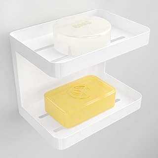 Orimade マグネット 石鹸置き ソープディッシュ お風呂 ソープトレー 水切りカゴ 石けん皿 ホワイト 2段式 約W12.5XD8.5XH10cm