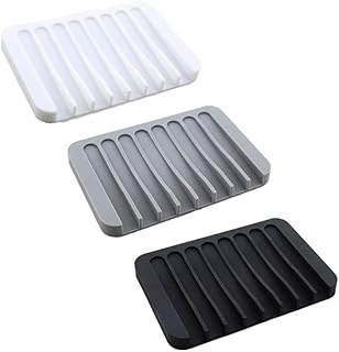 Kingsie 石鹸置き シリコン ソープディッシュ 水切り ソープトレー ソープホルダー ブラック ホワイト グレー 3個セット