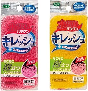 オーエ キッチンスポンジ ピンク イエロー 色指定不可 1個入 約縦12×横6×高さ4cm キレッシュ ダブルスポンジ 水切ればつぐん もこもこ泡立つ 日本製 51171