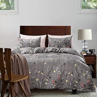 Tebery ウルトラソフトマイクロファイバー布団カバーセット ジッパー開閉 植物寝具セット 枝の葉柄 しわと色あせ防止 (クイーン)