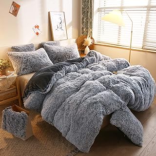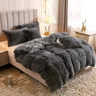 Uhamho 無地 ふわふわ フェイクファー フラシ天 掛け布団カバー 高級シャギーベルベット ベッドスプレッド ジッパー開閉 (ダークグレー、クイーン)
