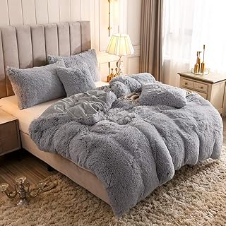 Uhamho 無地 ふわふわ フェイクファー フラシ天 掛け布団カバー 高級シャギーベルベット ベッドスプレッド ジッパー開閉 (グレー、ツイン)