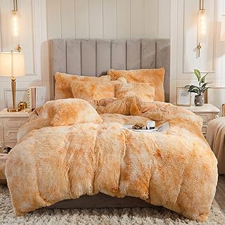 Uhamho タイダイプリント フェイクファー 寝具セット モダン 抽象的 シャギー フラシ天 掛け布団カバー 枕カバー付き 超ソフト 暖かい 丈夫 (クイーン サンドブラウン)
