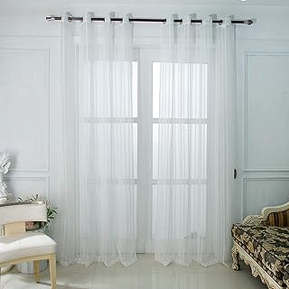 BOYOUTH モダンスタイル 縦縞 薄手ボイルカーテン グロメットトップ ウィンドウドレープ 寝室 書斎 リビングルーム ホワイト 39 x 98インチ パネル2枚