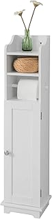 SoBuy トイレ収納ラック トイレ収納 トイレラック 幅23×奥行き19.5×高さ100cm スリム/省スペース ブラシ収納&ペーパーホルダー付き 可動板 隙間収納コーナーラック トイレットペーパーストッカー(frg177-w/ホワイト)