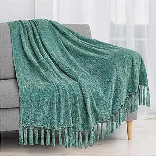 PAVILIA シェニール織タッセルフリンジスローブランケット | ベルベットのような質感の装飾スローソファ カウチベッド用 | ソフトでシルキーで快適 軽量ニットスロー | ティール 50 x 60インチ