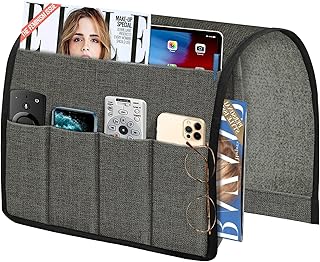 ソファアームレストオーガナイザー リモコンホルダー リクライニングカウチ用 アームチェアキャディ 6ポケット 雑誌 タブレット メガネ 携帯電話 iPad用 19x35インチ グレー
