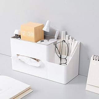 YOUHA ティッシュケース ティッシュボックス 卓上収納ケース リモコンラック 多機能仕分け収納 化粧品収納 小物入れ 北欧風 リビング 寝室 テーブル 事務室 (ホワイト)